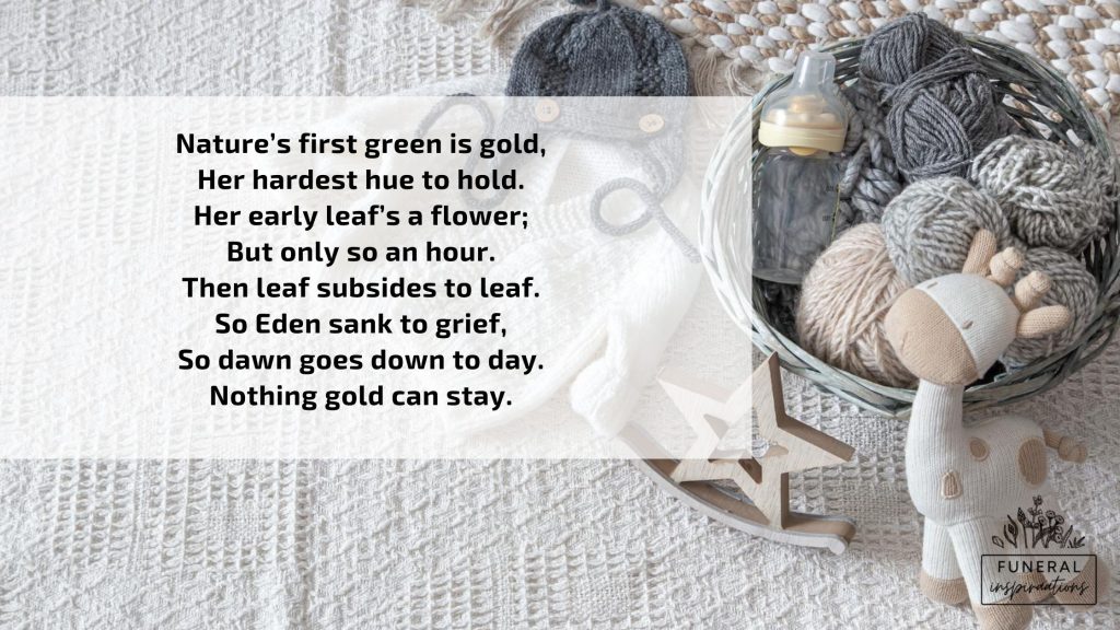 Through her, the bard beautifully expresses that feeling of longing for your loved one to still be alive, but also the thankfulness that you have such strong, powerful memories of them. Though your baby might be gone, the warm memories you have of them will never leave you.