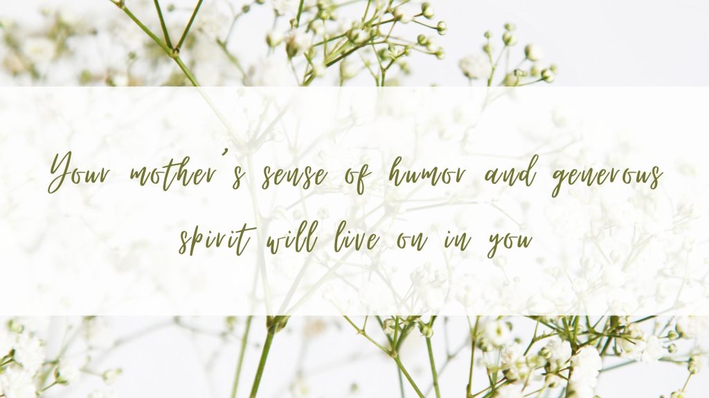 - ‘Your mother’s sense of humor and generous spirit will live on in you.’