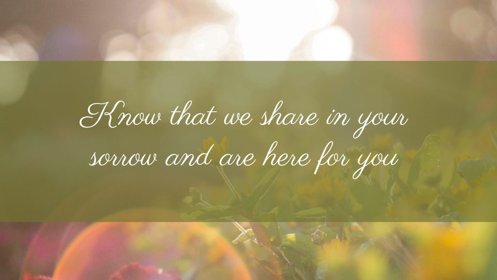 - ‘Know that we share in your sorrow and are here for you.’
